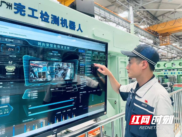 操作台前,随着转向架进入检测区域,转向架车间职工刘乔宇熟练地输入转向架型号并完成设备调试,完工机器人迅速通过机械臂上精度达0.5mm的3D视觉传感器对转向架各关键部件进行扫描,并按照算法自动识别故障。根据前端显示器反馈的识别结果,刘乔宇立即对故障进行复核:“顶部空气管路连接头异常已确认,现进行复核并处理。”从发现问题到问题处理完成不到5分钟,整个流程顺畅高效。“过去检查一个构架需要四人协作,耗时约...
