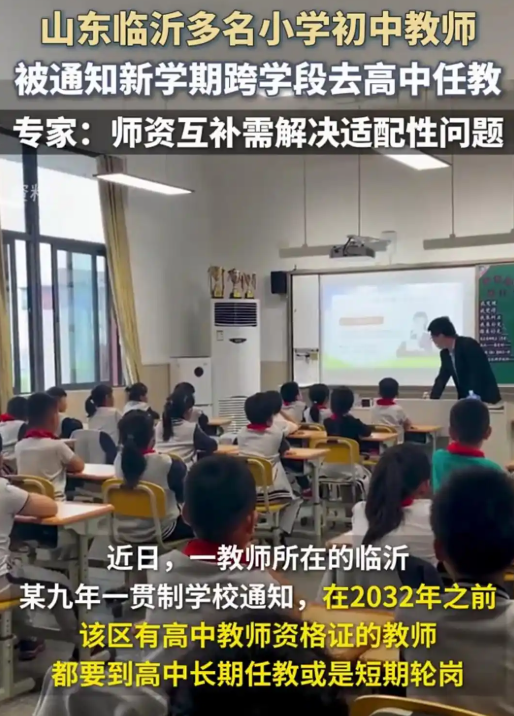 媒体报道,在山东省临沂市下辖的区县,有一批老师开了是跨学段任教。在即将开启的秋季学期,他们将离开之前长期任教的小学或初中,去当地的高中工作教学。